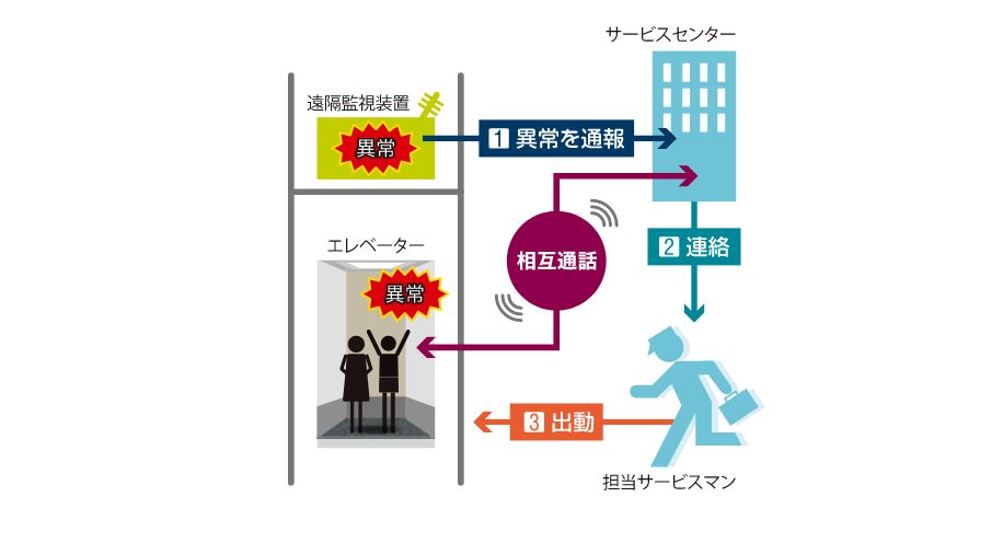エレベーターの異常は24時間・365日サービスセンターで受付しています。