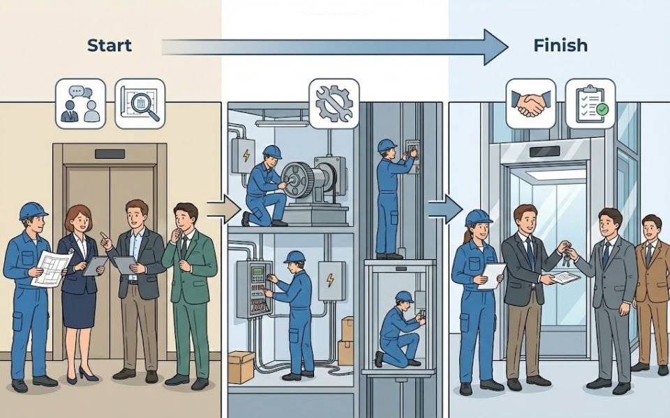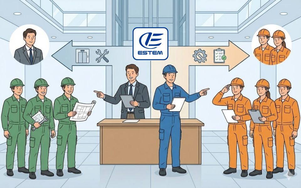 ESTEMでは、エレベーター関連業種のみなさまからのご依頼により設計からリニューアル工事を一貫してお引き受けしています。また、制御盤、巻上機のお届けなど、御社のご要望に沿った提案をすることもできます。ESTEMでは、施工実績の約半数が同業者様からのご依頼となっています。ぜひ、御社の強力なパートナーとしてご用命ください。